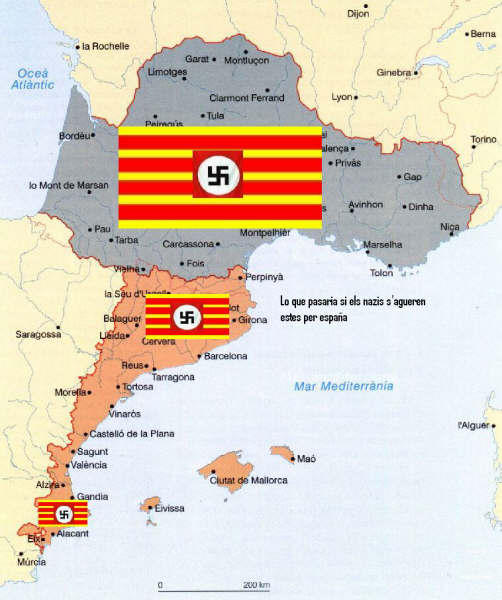 Ya té collons que un partit que presumix de progressiste tinga per objectiu reconstruir un païs medieval com el Regne d’Arago (¡¡¡¿qué demanaran els conservadors!!!? ¡¡¡¿Tornar al Jurassic!!!?). Ya té collons que eixe fals Regne d’Arago vullga anexionar-se Montpellier, Andorra, Arago, Valencia i Balears (¿i per qué no Murcia, Napols, Sicilia, Sardenya, Neopatria i Jerusalem que tambe eren part del mateix?). Ya té collons que diguen que eixa sera una macrorregio economica (¿qué és llavors l’Unio Europea?). Ya té collons que diguen que cal enfortir els contactes i la cooperacio economica i que despres mos bramen que ni una gota d’aigua als valencians (és un bon principi de colaboracio, ¡fent amics, sí senyor!). Pero lo que més collons té és que s’insistixca en un delirant imperialisme pancatalufo quan Maragall sap be que els valencians ni volem ser catalans ni ho serem mai.