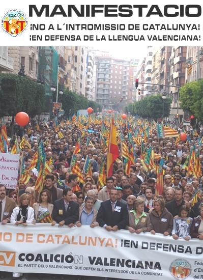 El 27 de Novembre de 2004 passarà a l’historia. Algun dia els chiquets valencians estudiaran en els llibres de text que el poble valencià patí un genocidi cultural durant molt de temps, que l’imperialisme catalanufo –en la connivencia dels politics valencians- tractà d’exterminar la Llengua Valenciana i impondre el catala en el nostre païs. I estudiaran que el 27-11-2004 el poble es llançà als carrers a dir prou de tant de fascisme catala i prou de ser una moneda de canvi entre Espanya i Catalunya. Els malintencionats diuen que la llengua ya no interessa a la gent, que el conflicte està superat, pero més de 600.000 patriotes han acodit en defensa de l’identitat. 600.000 goles clamant: “¡Llengua Valenciana, mai catalana!”. Glorios. Apoteosic. El cel deu ser molt paregut a aço.