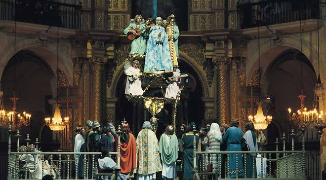 El Misterio de Elche (o Misteri d’Elig en valenciano) es una obra teatral infantil en latín y lengua valenciana que data de la Edad Media. Está en verso y es una pieza esencialmente cantada. El historiador Francesc Almela i Vives, en su obra Valencia y su Reino (1965), nos cuenta que en 1931 el gobierno de la República Española decidió concederle el título de Monumento Nacional, dejando el Misteri bajo la tutela de la Junta Nacional de Música y Teatros Líricos, con un documento en el que reconocía su valor cultural e histórico, con las siguientes palabras: