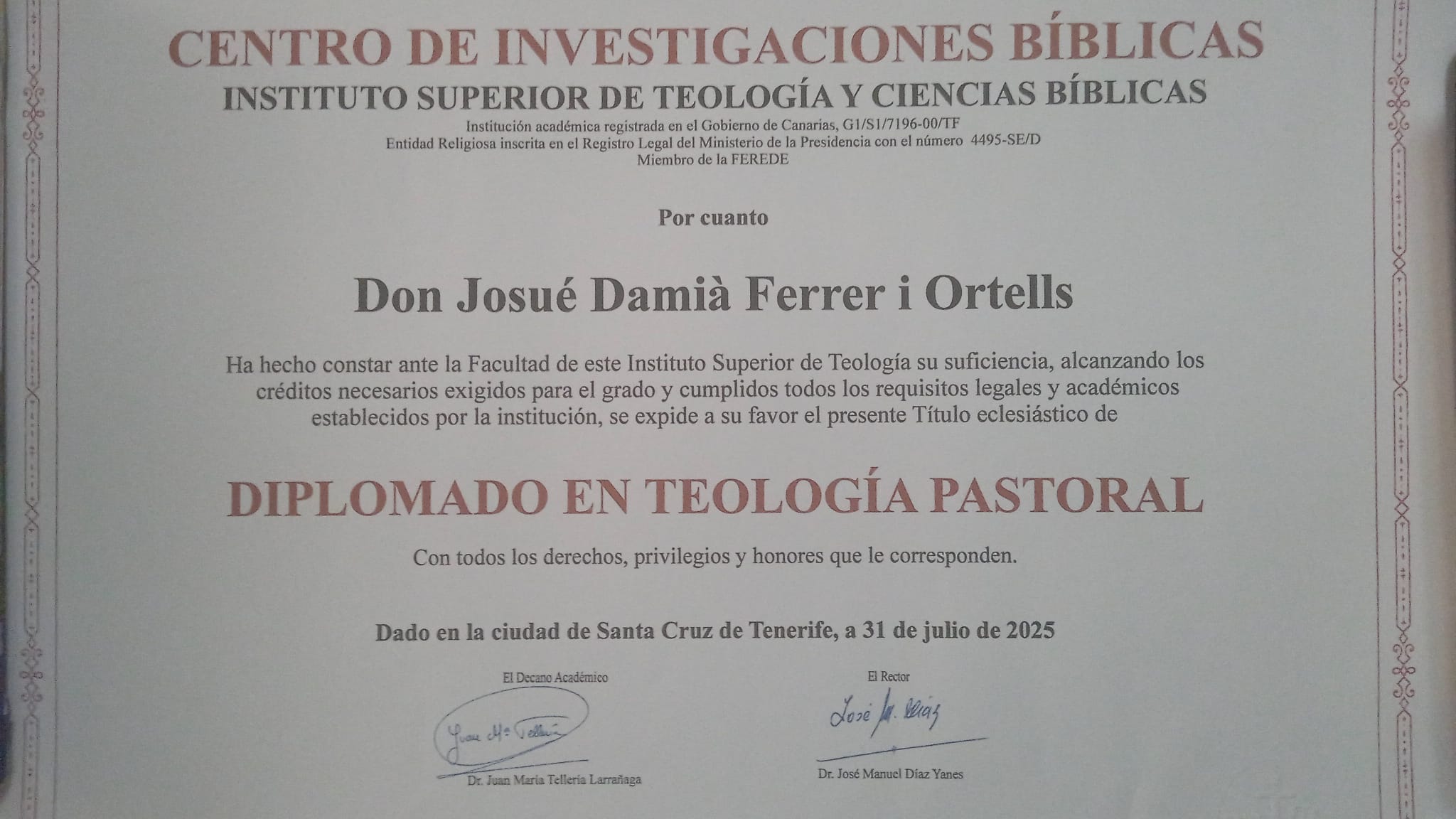 Tras varios años de estudio, por fin obtengo la diplomatura en Teología. Gracias de corazón al Señor y a todos los profesores del CEIBI. Si Dios quiere, el próximo objetivo: el grado.